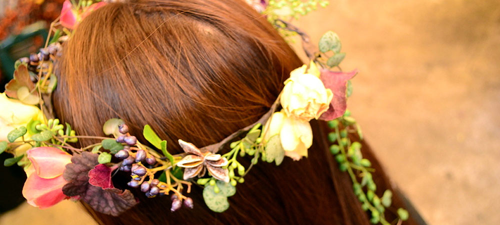 ウエディングブーケとお揃いでヘッドドレス・リストブーケも承ります。生花・造花いずれでも対応可能です。